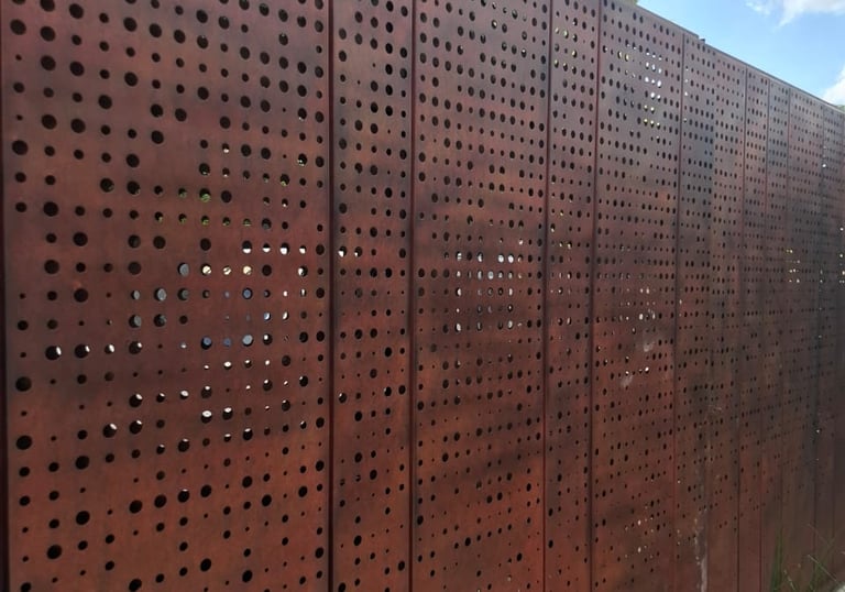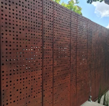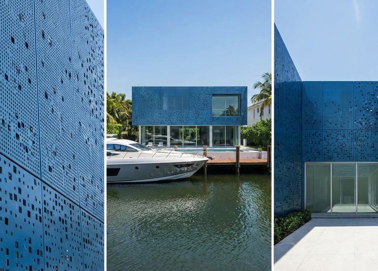 Nuestra línea combina acero de alto calibre con un patrón de microperforación inteligente, que no solo ofrece un diseño moderno, sino que evita la acumulación de agua de lluvia y mantiene las superficies más frescas al sol.