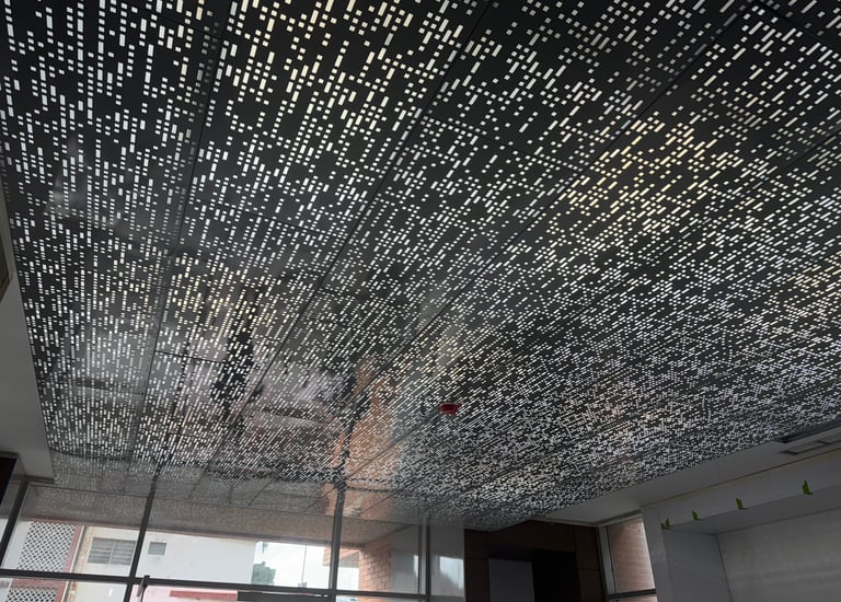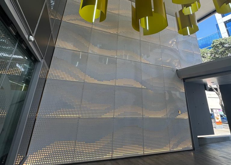 Más que un simple revestimiento, nuestras paredes de metal microperforado son una declaración de intenciones en el diseño interior. Combinamos la durabilidad industrial del metal con la precisión tecnológica de la microperforación para crear texturas visuales que aportan profundidad y carácter a cualquier entorno, desde lobbies corporativos hasta espacios comerciales de vanguardia.